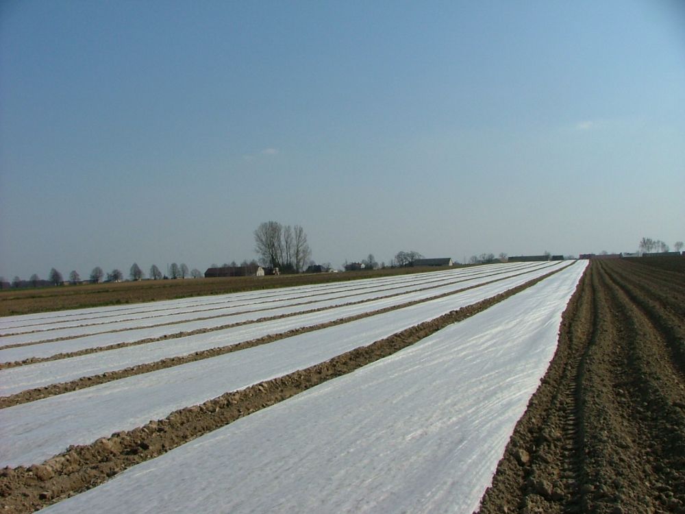 можа пакрываць расліны на плоскіх пасевах, на градах або градках. Яно ахоплівае плантацыі капусты,