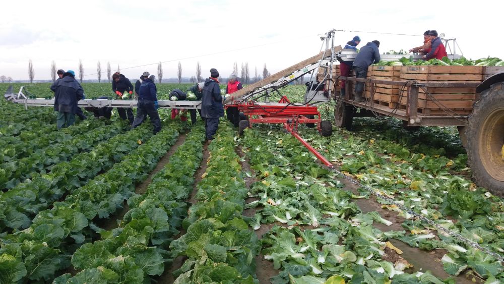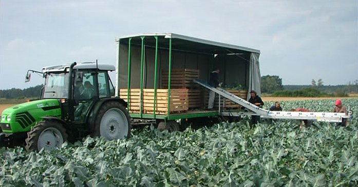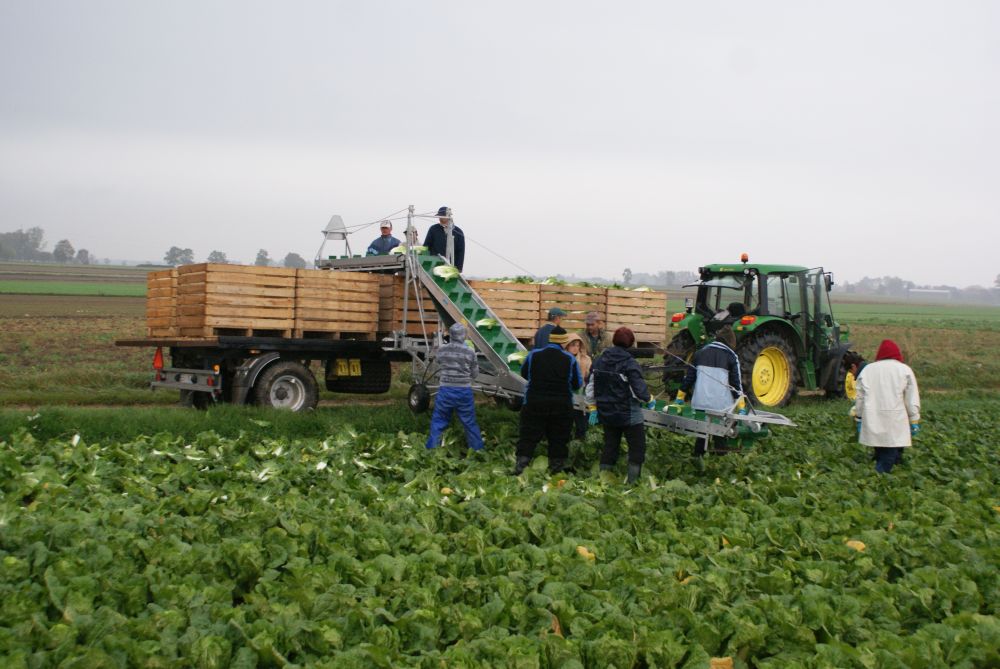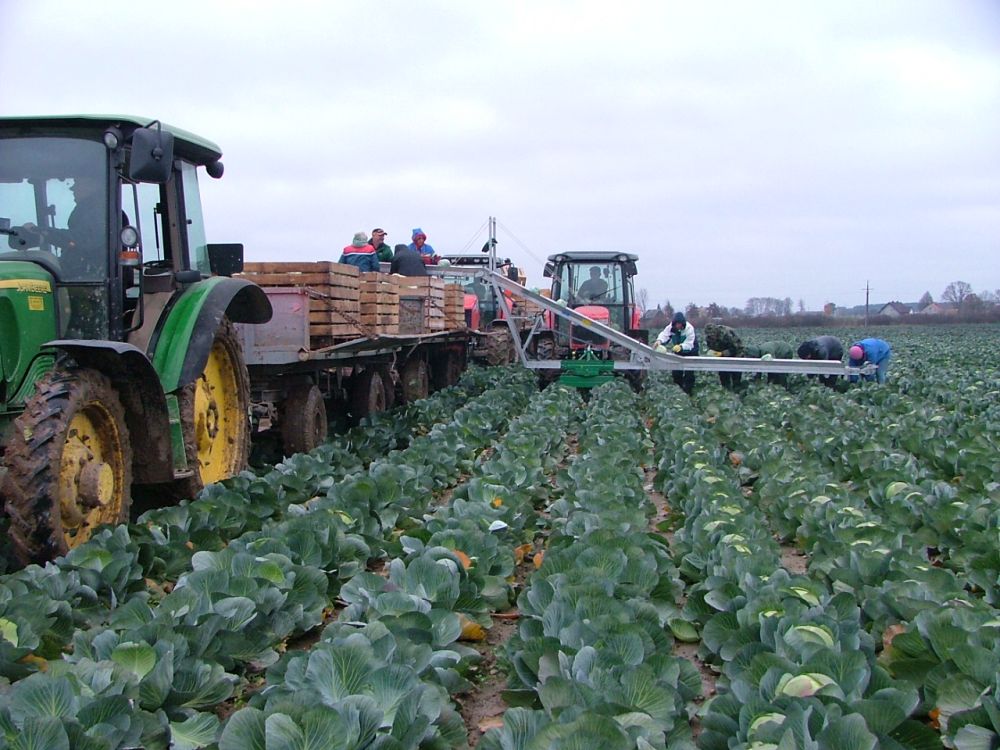 • Хуткая ўборка гародніны (100-120 паддонаў качаннай капусты). З транспарцёра супрацоўнікі збіраюць